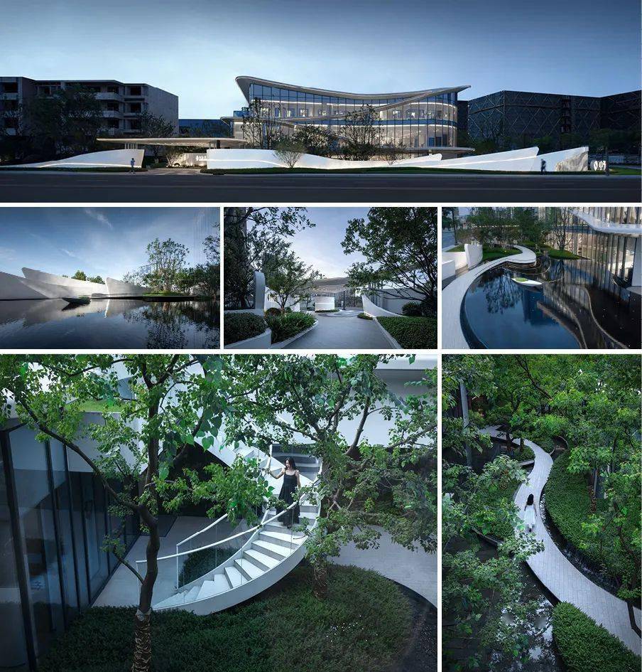 设计师以现代的设计手法对自然形态与建筑元素的提取融合,抽象演绎拓展了场地空间,营造出具有现代几何美学的空间载体,创造多重立体景观体验。