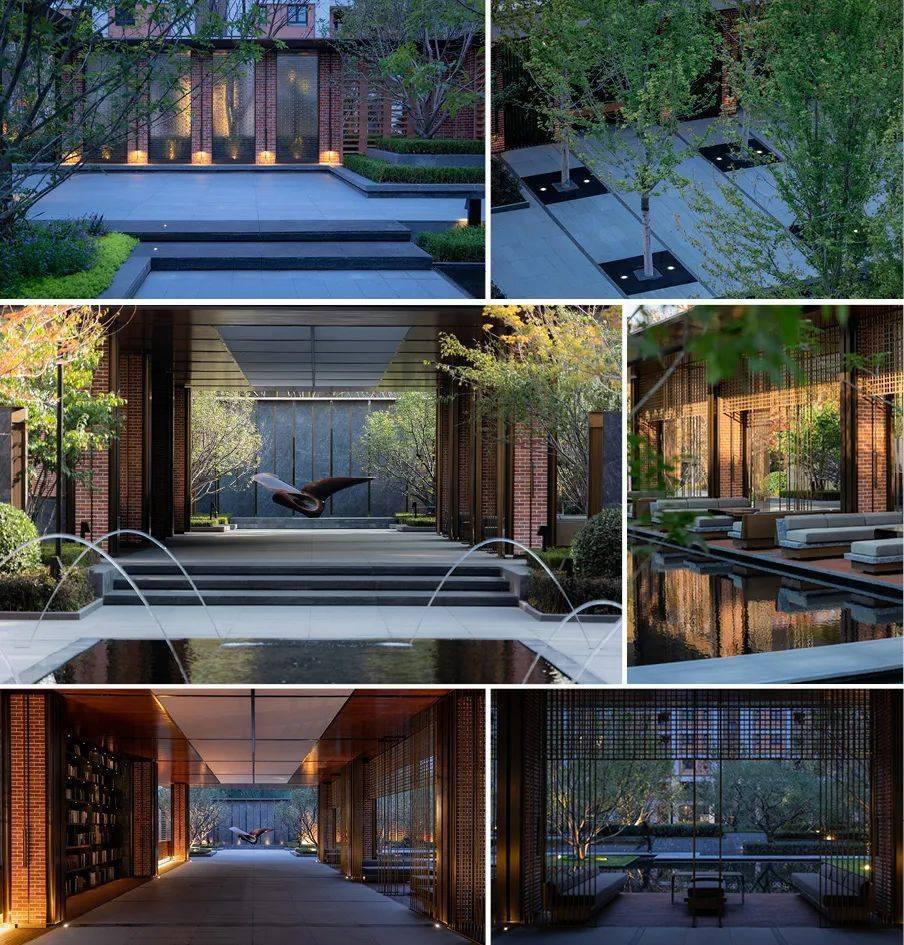 本案取法于苏州园林的经典元素,复兴东方传统意境,设计从苏州园林的造园手法中获取灵感,打造精致而巧妙的游园空间,重新展现诗意的人居生活。苏州留园,有“不出城郭而获山林之趣”的美谈。效法留园的空间布局形式,移步异景的空间体验感受,复刻留园的经典元素:假山叠瀑、四序之树、半山景亭、镜水无波、小桥斜渡,演绎为六大景观空间节奏—苏韵六景,营造丰富的景观体验层次。