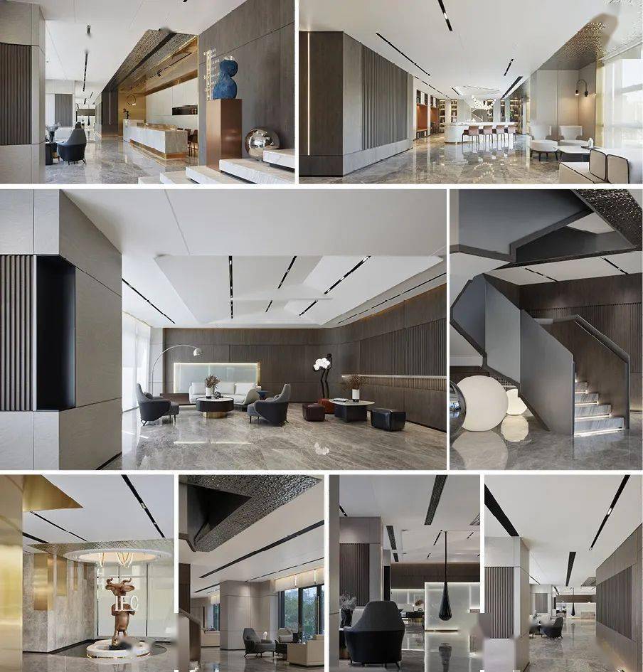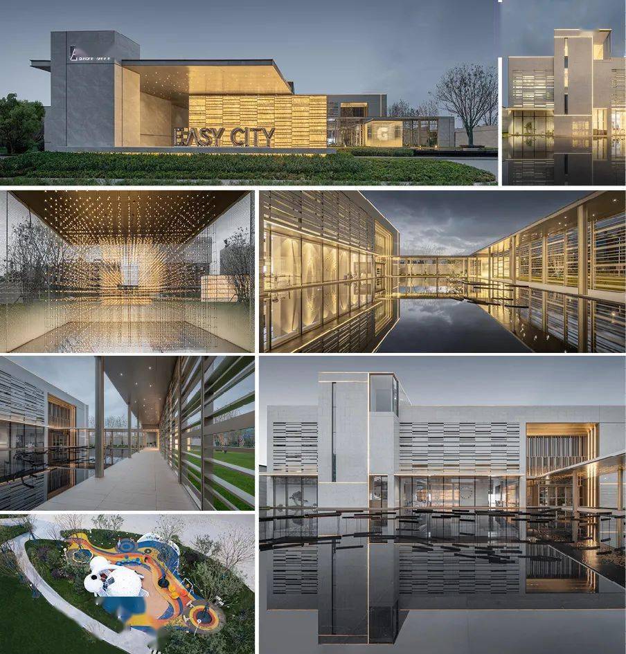 项目整体采用现代元素,以流畅的线条彰显出现代生活的自由性,手法上结合山的挺拔,水的柔和,通过简洁的墙体,灵动的线条,于浮华的城市中感受慢一步的惬意。