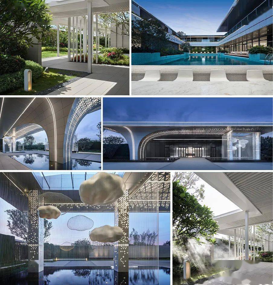 上海嵩域景观设计有限公司▼项目以现代人文主义的景观设计手法结合草海地域特点,将“彩云”的形态特征,抽取为线性语言和空间框架,作为景观塑造的灵魂要素,打造舒适的移动空间体验。通过精致的廊架结合现代简洁的水景和草坪空间营造出一个高端舒适的社区会客空间。云南春城的理想符号,对于居住者来说,寓意着一种诗意,美轮美奂的居住空间环境,展现了一种自然美好的世界,一个超凡脱俗舒适的心灵家园环境,即使在繁华喧闹的都市之中,也能得到一片纯净的乐土。
