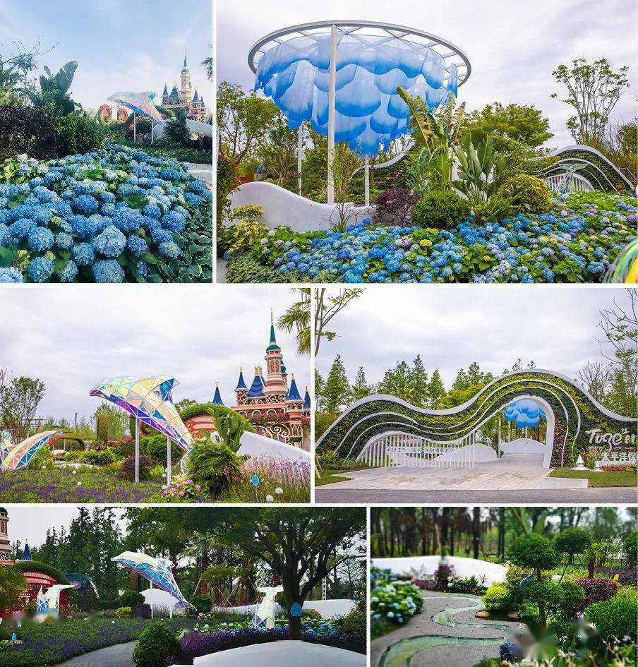 整个花园设计充分利用中国太保企业形象密切关联的水滴、海洋等核心元素,以蓝色为主色调,以企业经典宣传语“平时注入一滴水,难时拥有太平洋”为灵感。用叙事手法演绎滴水汇入海洋的过程。展园路径从注入、汇集、收集、积累到展望,将生命中每个阶段融入景观体验中,展现成立三十年的中国太保从成长到绽放的全过程。在叙事路径上安排四大主要节点,幸福门、思源亭、扬帆道、蓝梦园。