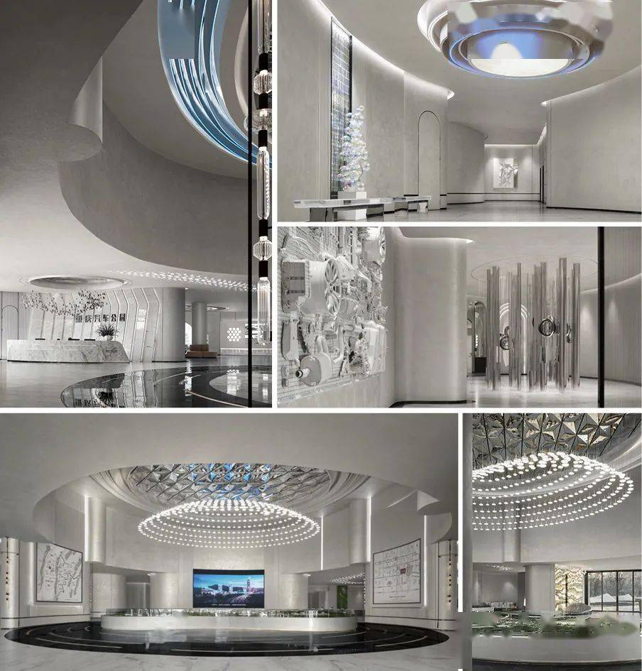 ▼当科技与自然碰撞出原始的精神共振,光与影的联结互动,充满艺术感知的创新形式,通过一些高定款互动艺术装置给予空间如梦似幻的镜面人生,整个空间以曲折婉转的光影和温润的线条融入金属质感漆,极致的留白配上利落干净的线性灯光打造出时光之感,体现出从过去到现在,沿着灯光的指引步入全新的未来。
