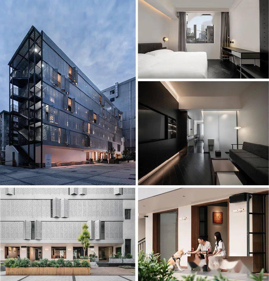 项目位于成都太古里商圈内的老街区,离繁华的春熙路步行街仅一步之遥。酒店前的空地被营造为一个向人发出邀请的社区花园,模糊了室内和室外、公共和私密的空间边界。旧建筑经过精心而克制的改造,作为“礼物”还给周边社区。间白不仅是旅居的容器,也是承载社区生活和在地文化的场所。